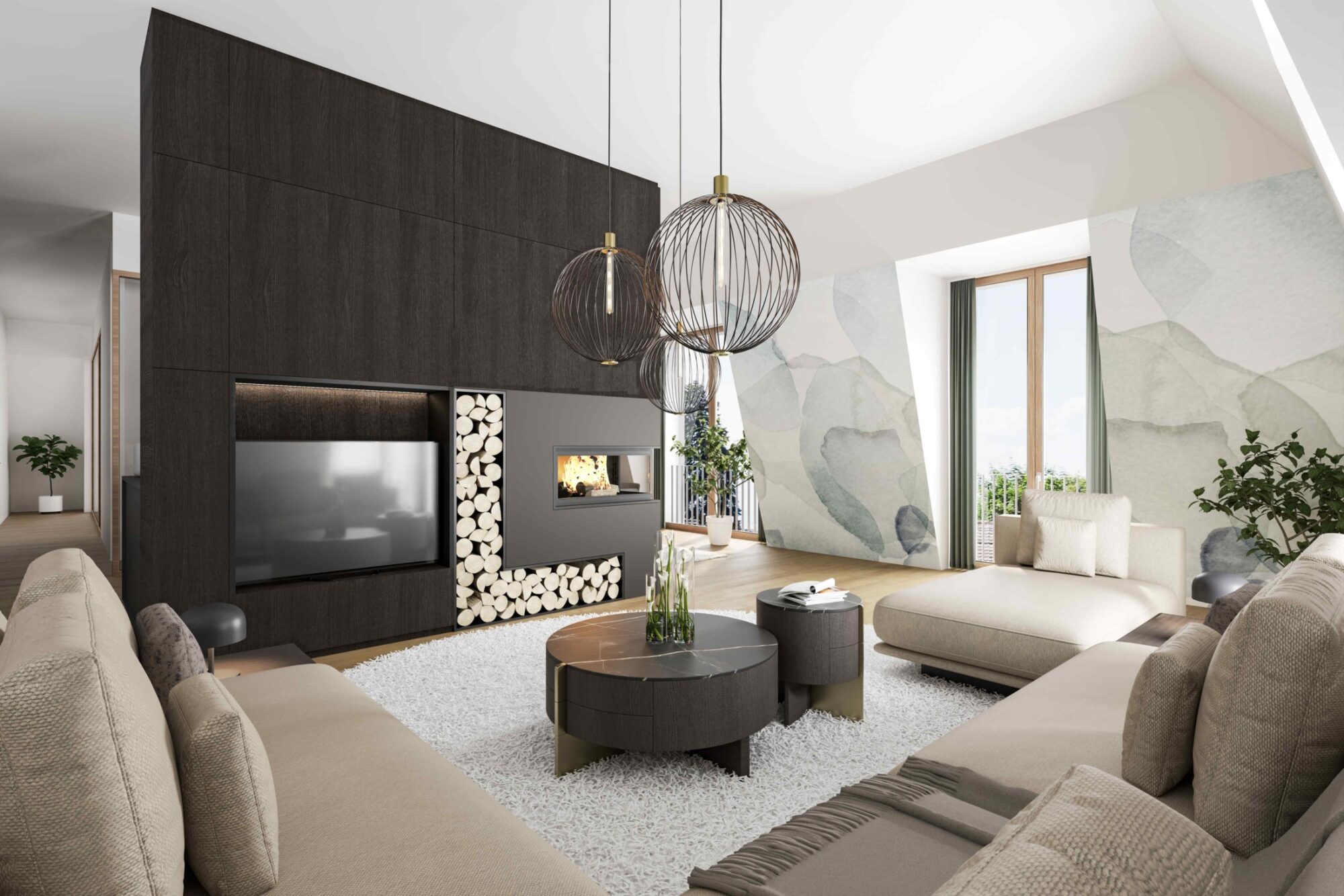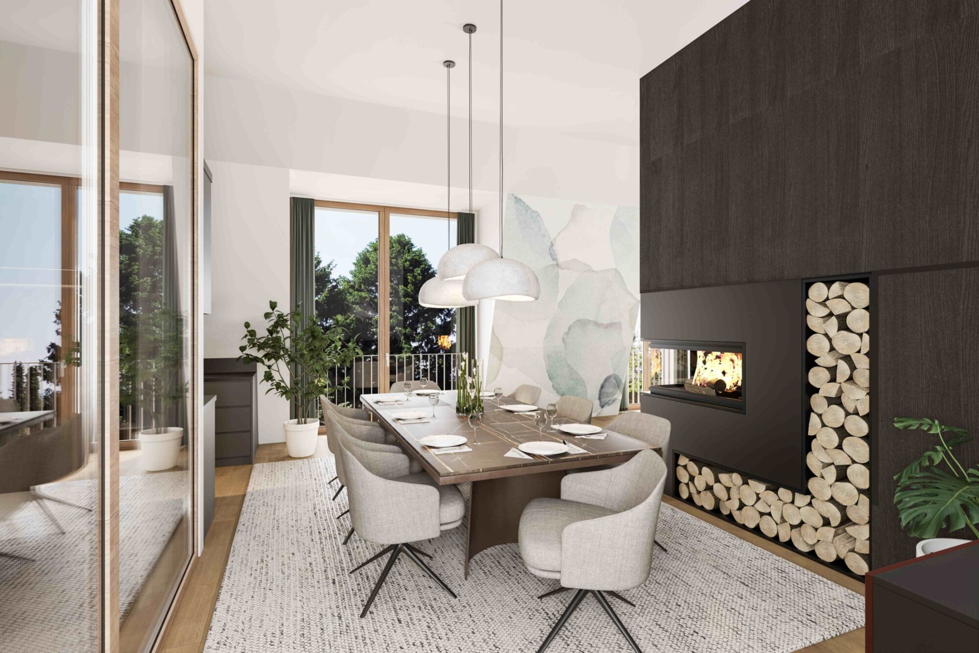• raumhohe Fenster, die eine lichtdurchflutete, naturnahe und weitläufige Wohnatmosphäre schaffen